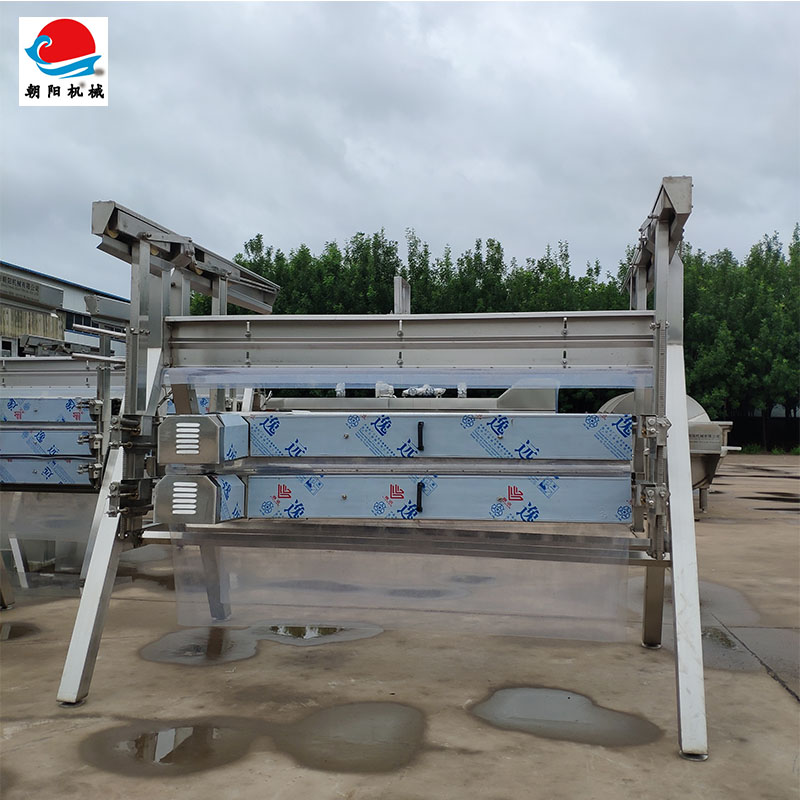 A字型立式精脫毛機(jī)的機(jī)架、外罩等全部采用不銹鋼材料制作而成,外觀整潔美觀大方。6排脫毛箱體,每排10只脫毛盤(pán)。2.2KW電機(jī)共6臺(tái)。箱體用δ=3.0㎜不銹鋼板制作,框架用90×90×3、100×50×3不銹鋼方管制作。脫毛盤(pán)軸設(shè)有兩道防水裝置。片基平皮帶傳動(dòng)工作時(shí),工作箱傳動(dòng)平穩(wěn),調(diào)整靈活便捷,升降機(jī)構(gòu)調(diào)整靈活方便,復(fù)位自動(dòng)對(duì)中,每排脫毛箱可以上下、前后、箱體角度三維調(diào)節(jié)便于車間日常的維護(hù)與清。導(dǎo)向機(jī)構(gòu)可使禽體順利進(jìn)入機(jī)體,并相對(duì)定位,沖洗機(jī)構(gòu)可隨時(shí)沖去脫掉的羽毛,促使設(shè)備及禽體安全衛(wèi)生,免于交叉污染。